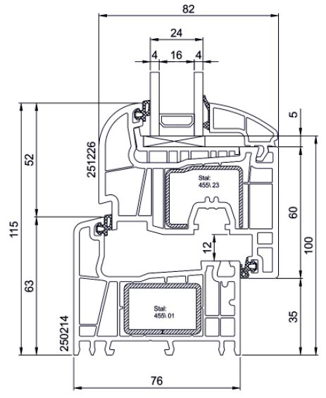 - profondità telaio di 76 mm e profondità anta 82 mm